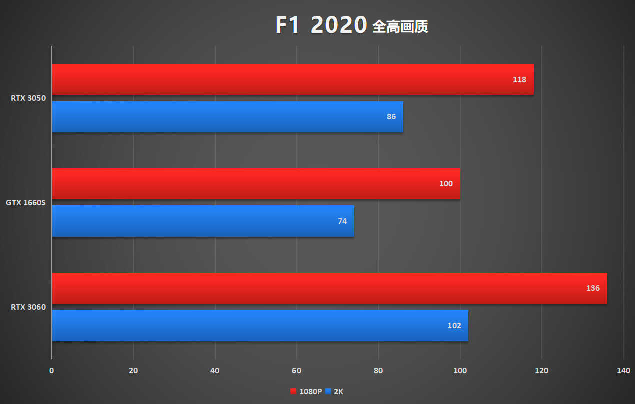 总的来说,RTX 3050比GTX 1660 SUPER要强不少,领先后者8%~12%,但是和RTX 3060相比,则有着接近30%的性能差距,整体游戏性能依然不及上代主流游戏显卡RTX 2060。