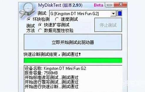 有一些假的U盘是扩容盘,从1GB扩容到2GB等,那么这些扩容盘都是不能正常使用的,如果你担心买到扩容盘则可以通过MyDiskTest进行扩容检测,如果检测出扩容,那么就是假的了。