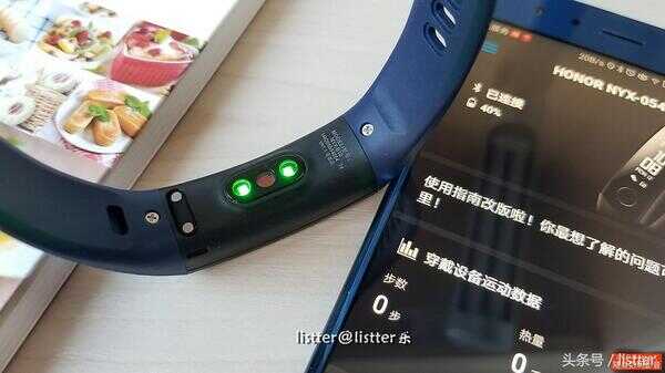 底部是心率监测传感器,原理是发出绿色光线打到皮肤底下的毛细血管通过红细胞流动中的反射光线接受到传感器中进行一系列复杂的计算得出一个心率值。通过24小时不间断监测心率,结合华为2012实验室新一代动态心率算法,有理由相信荣耀手环3的监测数据的准确度还是有保障的。