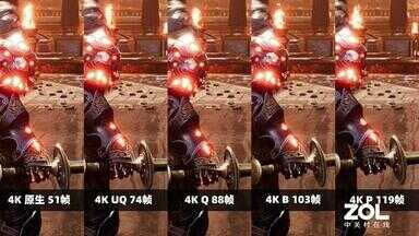 在《众神陨落》画面的对比中,我们主要看主角的盔甲以及手中的武器。可以看到在UQ和Q模式下已经出现了噪点,但并不明显,整体相较原生画质区别不大,在P模式下则较为模糊,角色的手套和武器给人较为明显的模糊感。所以即使是AMD官方,在这几种模式中也是建议,如果不是对性能有非常高的要求,不建议选择该模式。