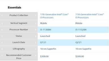 从英特尔官方ARK的参数信息中可以直观发现,酷睿i5-11320H对比今年年初发布的酷睿i5-11300H,核心频率以及核显规模都做到了小幅提升。