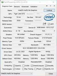 GPU-Z2.41版识别出酷睿i5-11320H的核显参数信息,规格确实是完整的96EU。