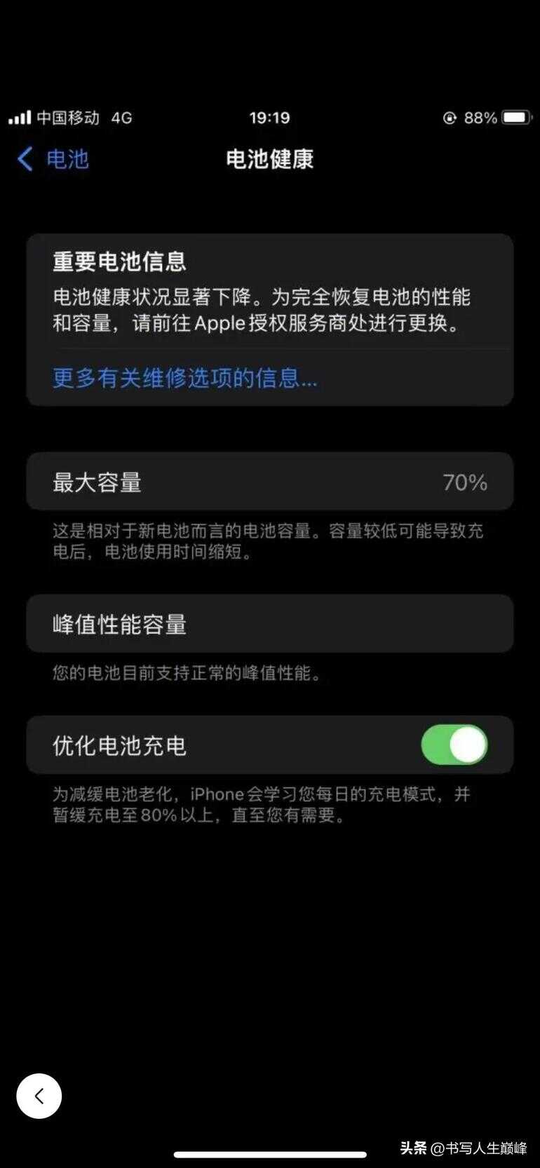 经咨询苹果电话客服和仔细翻阅苹果手机的官方文档,才发现电池健康度下降得这么快,跟个人的不良使用习惯有直接关系。