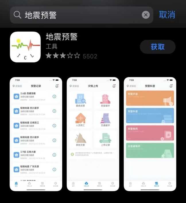 苹果/三星/其它手机:搜索“地震预警”关键词,下载相关App。