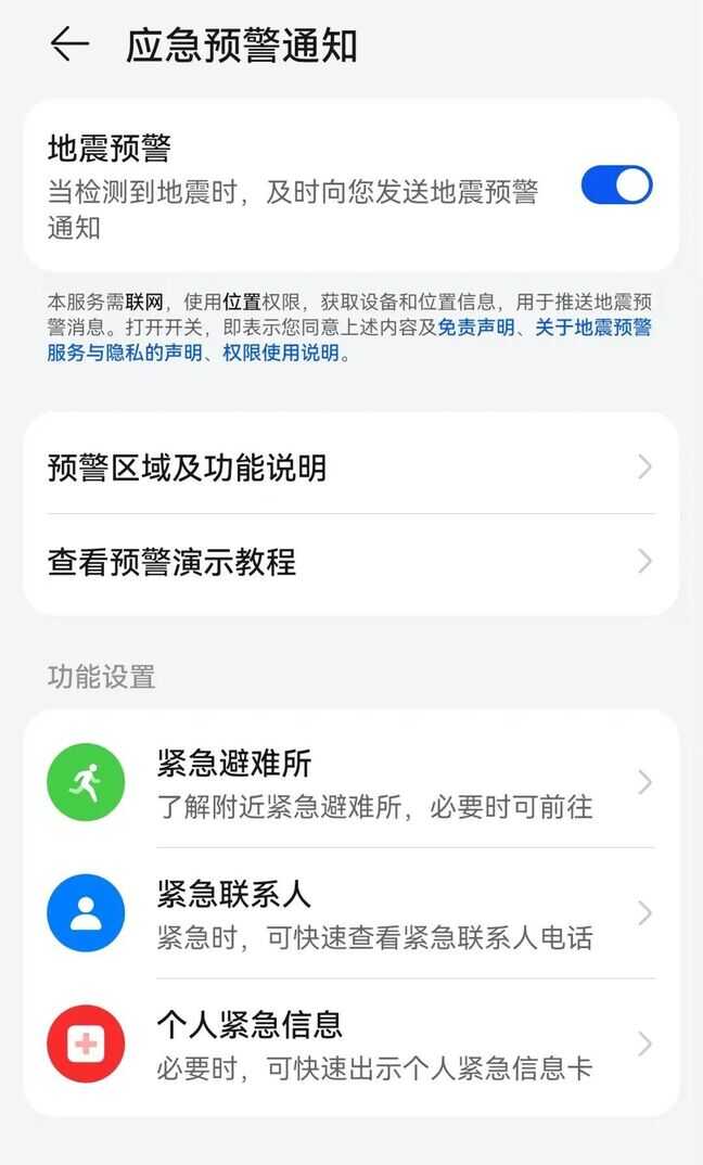 OPPO/一加/真我:设定→安全→SOS紧急联络→自然灾害警报→地震警报。