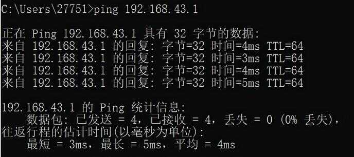 命令:ping 192.168.43.1