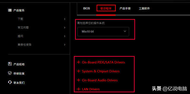 2.微星主板,百度微星主板,或输入网址https://cn.msi.com/进入微星官网,点击页面上方的客户服务进入技术与支持页面,在页面下方点击驱动与下载,再弹出的窗口点击主板,我们可以输入产品名称或是通过筛选功能找到我们主板的型号,然后点搜索,再点驱动程序,选择好系统版本后就可以像华硕一样下载我们需要的驱动程序了。