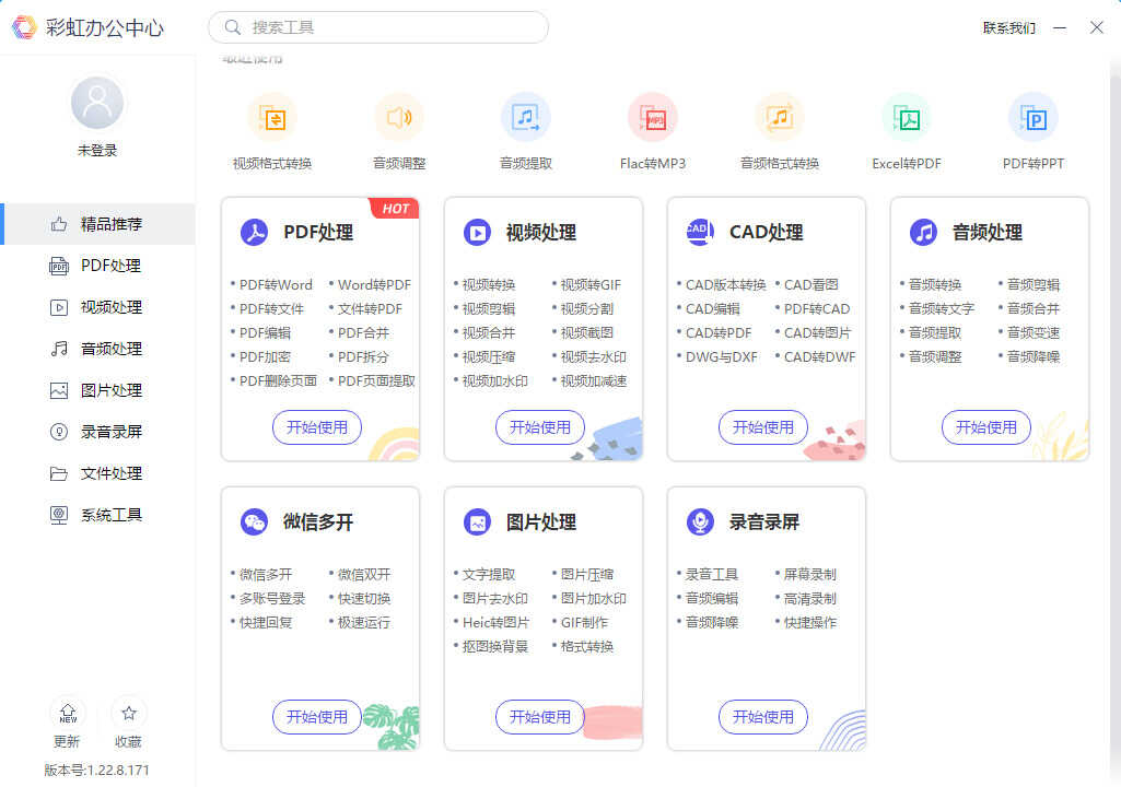 市面上有很多的格式转换工具,小编今天要推荐两款好用的格式转换软件,一个是【风云视频转换器】,另一个是【彩虹办公中心】,前者是专业视频处理软件,有视频格式转换功能,特点是功能精细;后者是办公工具箱,特点是功能广,除了有视频格式转换功能外,还有文档格式转换、图片处理、音频处理、cad处理等7大类功能。