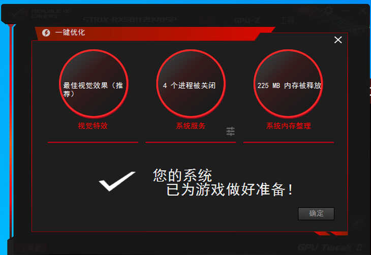 此外,通过GPU Tweak II进行一键优化,将ROG STRIX RX580 2048SP-8G切换至OC Mode。