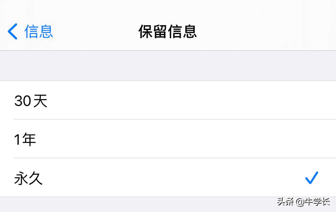 但如果你像小编一样,接收到的都是垃圾短信,那么建议你打开iPhone【设置】-【信息】-【保留信息】,在这里就可以自由设置短信保留时长,到期系统将会自动清理短信了!