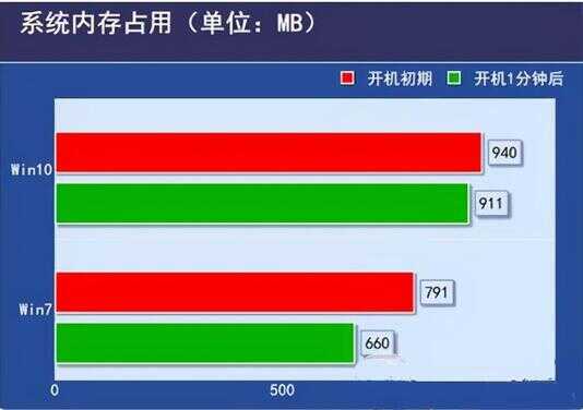 3、只是在实际测试中,win10比win7的内存占用量有所增加。