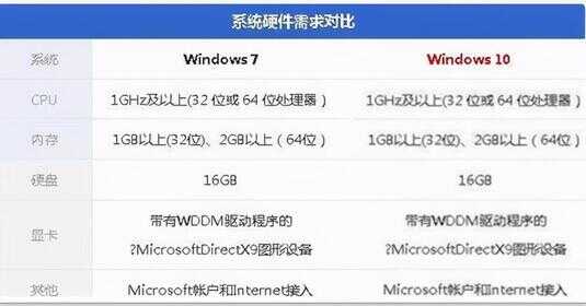 4、总体来说Win10配置要求和win7基本一致,只是内存占用方面win10要比win7有所提升。