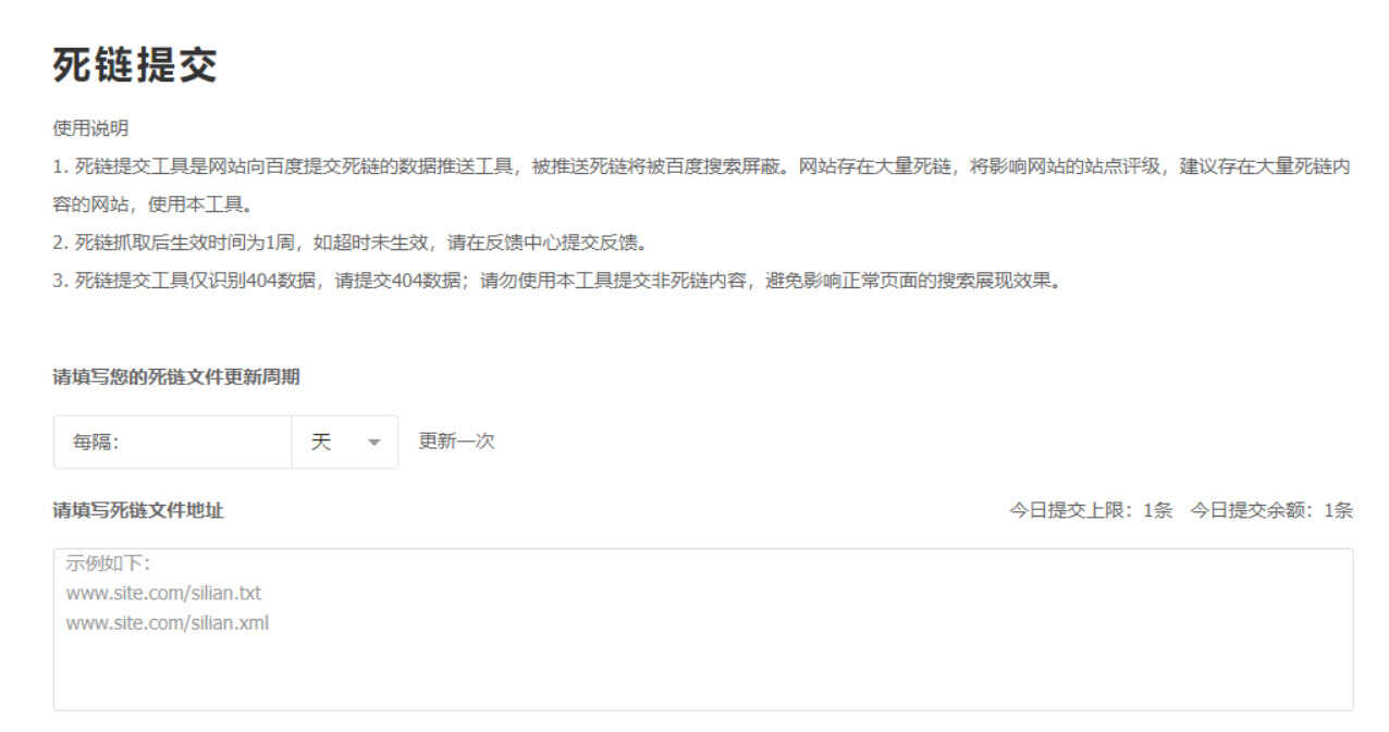 3、如果网站存在大量死链,将影响网站的站点评级,可以将大量死链内容的网站推送给搜索引擎平台