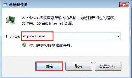 4、输入explorer.exe,点击“确定”,此时桌面就又恢复了,如图所示: