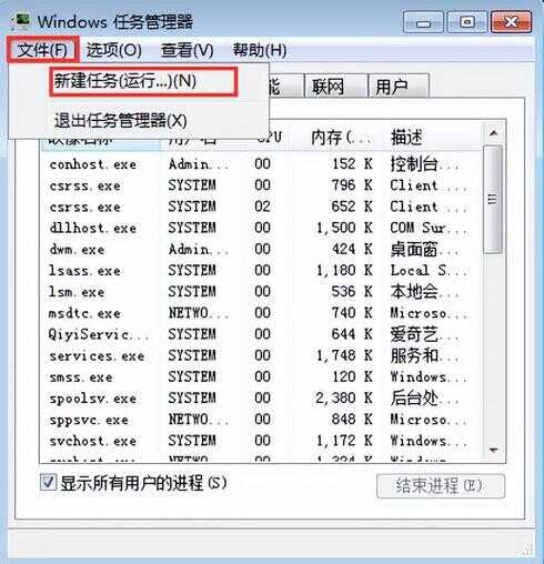3、点击“文件--新建任务(运行…)”,如图所示: