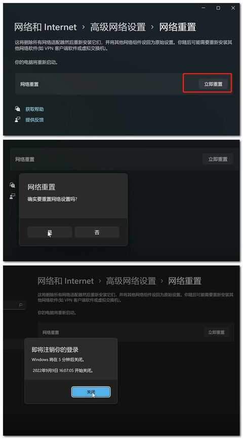 点击立即重置,然后等待重启或者自行重启完成即可。
