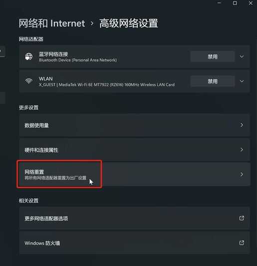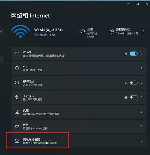 在上面的指示中打开的“网络和Internet设置”中,点击高级网络设置