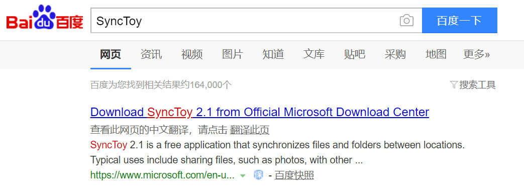 哪里下载?在百度里搜索 “SyncToy”,就会给出对应的官网下载链接。如果找不到链接或咨询其它相关用法也可以私信我。