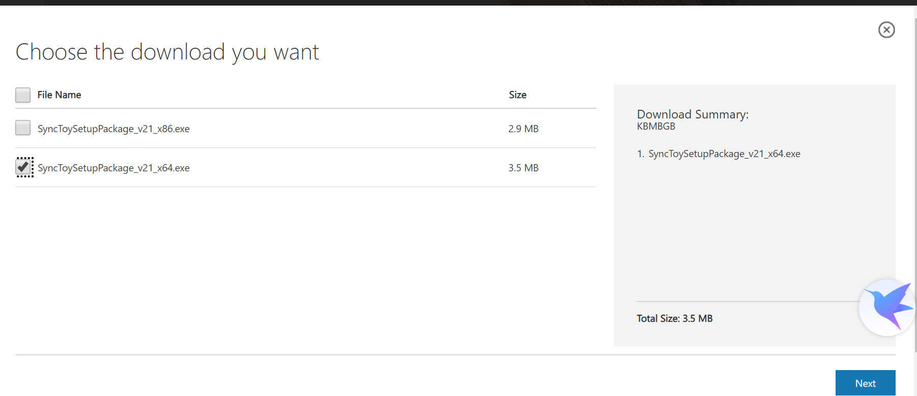 这是下载 SyncToy 页面,软件语言目前只支持 English,没有简体中文版本的,这里我选的是64位下载,你们可以根据自己电脑配置下载对应版本。