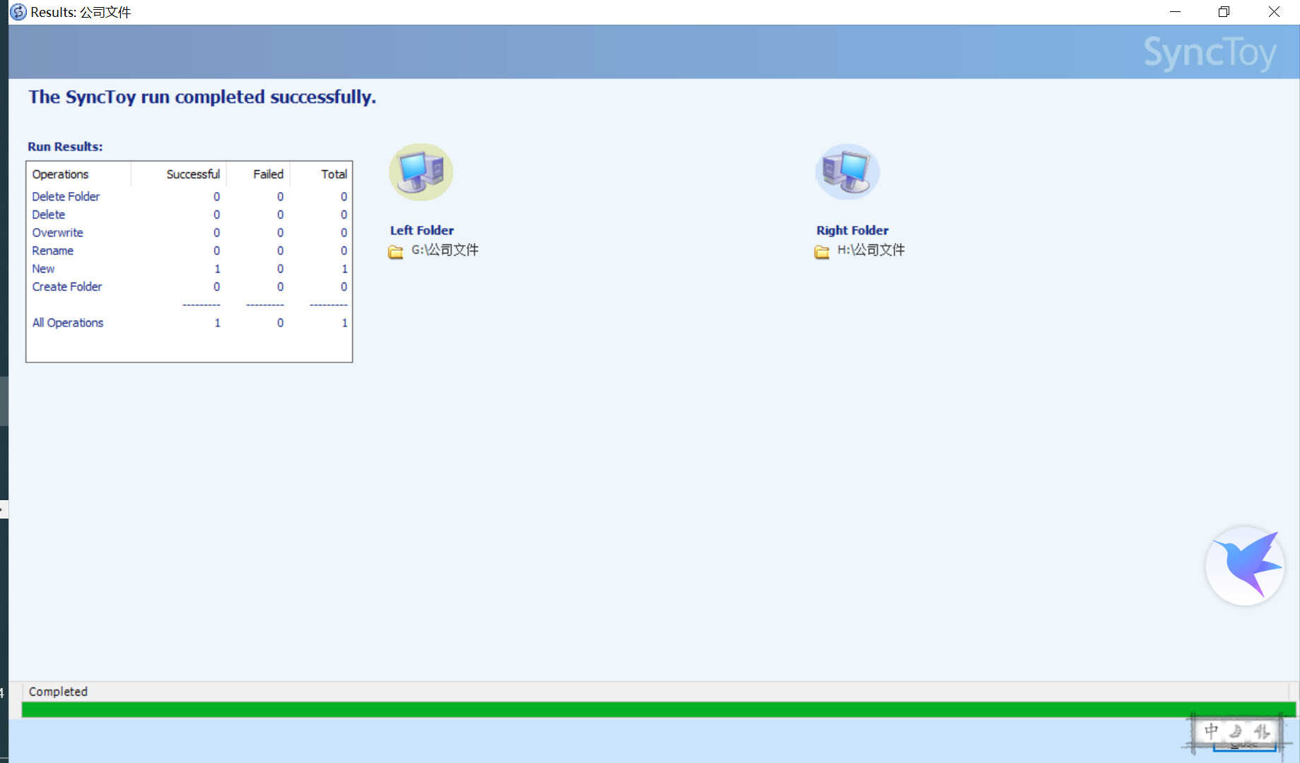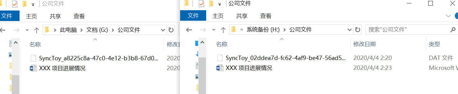 现在,我的 G 盘创建了一个 XXX 项目进展情况的 word 文档,H 盘没有,点击 Run 看看 会不会自动把 G 盘的文档同步到 H 盘呢?