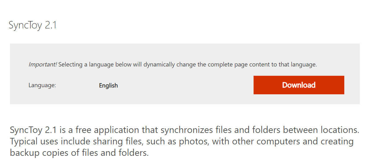这是官方对 SyncToy 2.1 的简单介绍。