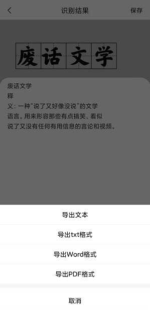 第一步,使用应用商城搜索下载“文字提取扫描王”app。第二步,打开后点击“传图识字”功能或者“图片转PDF”功能。第三步,将需要扫描的文件拿出来拍照,然后调整需要扫描的文件范围。第四步,之后就可以看到识别结果了,可以将需要的文字复制出去,如果全部需要的话可以点击“导出”按钮整个导出为文本、TXT、Word或PDF格式就可以了。