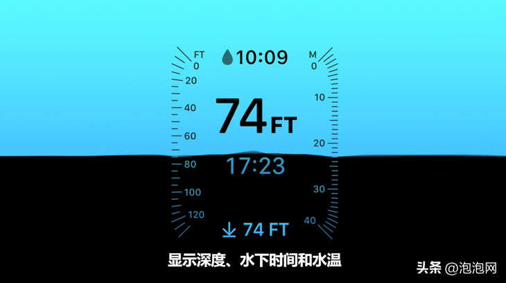 苹果官方表示,Apple Watch Ultra是一款适合户外涉险场景的多功能工具。它支持了L1+L5双频 GPS 定位;内置的深度计支持EN 13319认证,防水性能达到WR100,可以用于潜水环境。由于定位的原因, Apple Watch Ultra可实现36小时的常规续航,在此后发布的更新上更可达到60小时的极限续航。
