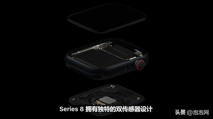 苹果官方为Apple Watch Series 8加入了全新的体温传感器,分别位于屏幕下方以及表壳背面。通过双体温传感器,Apple Watch Series 8可以在夜间用户睡眠时以5秒一次的频率进行用户体温的检测,并且达到0.1℃体温记录,通过对于用户体温的检测,Apple Watch Series 8可以更加精确地测算用户的排卵周期以及月经周期,对于女性的健康监测有了进一步的加强。