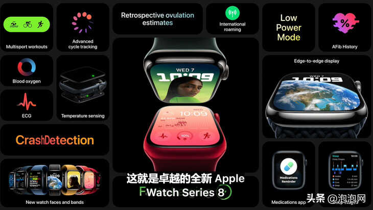 而在开头的介绍后,苹果推出了全新的Apple Watch Series 8产品。根据苹果官方的说法,Apple Watch Series 8采用窄边框的大屏设计。并且在女性健康方面进行了进一步的发力。