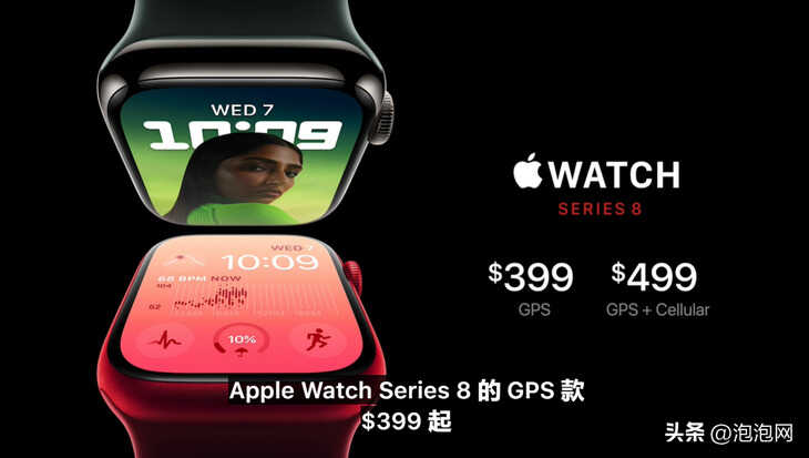 根据苹果官方的信息显示,Apple Watch Series 8 GPS版本售价为399美元起,将会在9月16日开售。