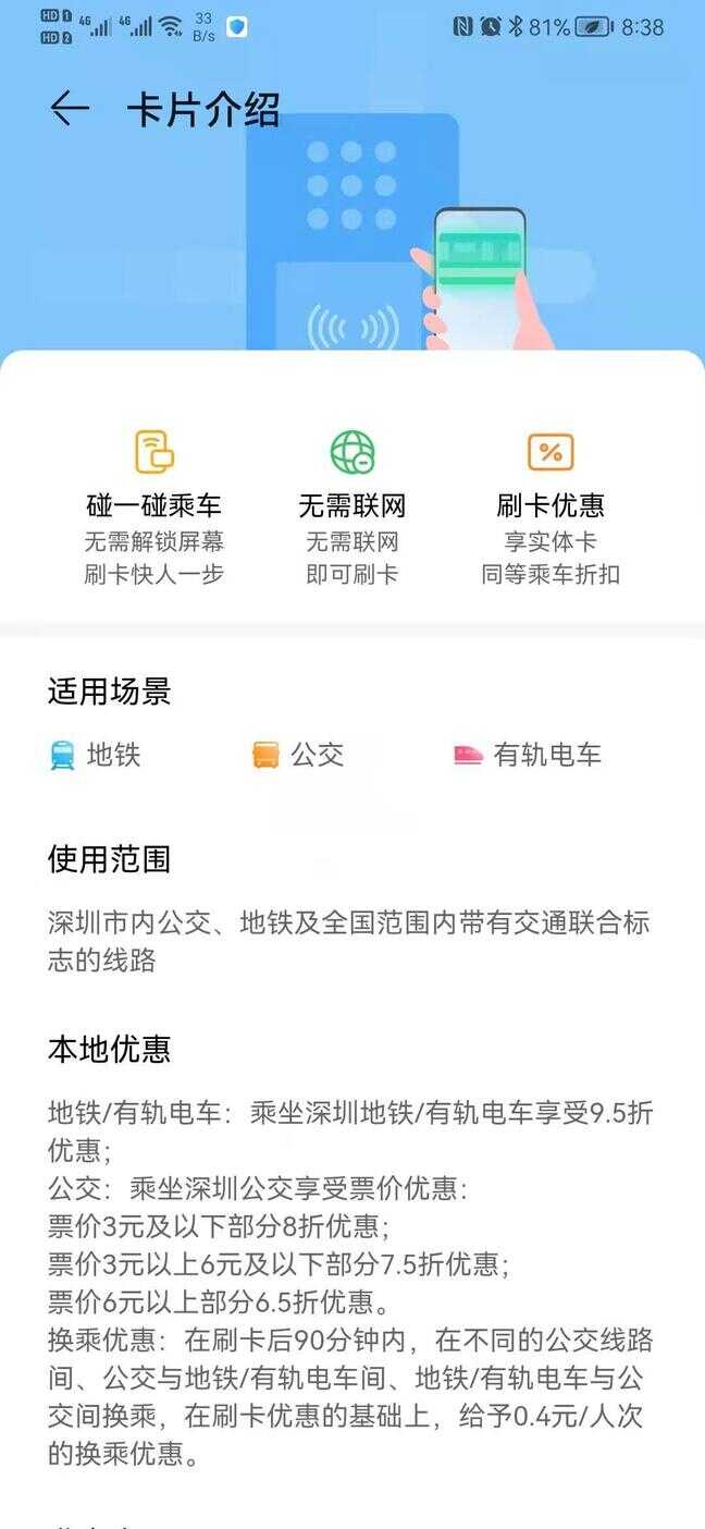 以华为手机为例,在华为手机里有一个钱包的app,点进去后,有个交通出行,点进去之后,有个手机描边公交卡,点击立即开通。选择你所在城市的交通卡。我开通的是岭南通·深圳通,当时开卡是免费的。