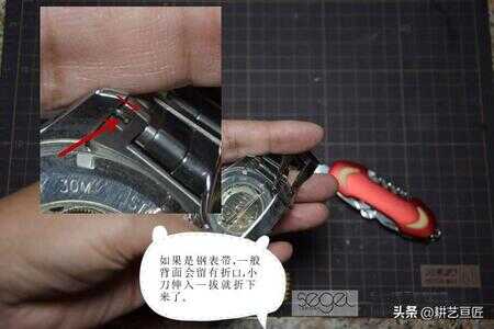 当你的表是钢带时,一般钢带的背面有一个拆口,用刀尖伸入抠一下,就出来了。