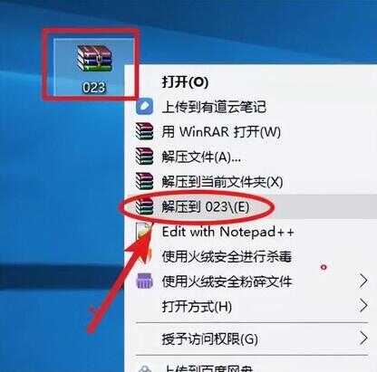 3.鼠标右击【023】压缩包选择【解压到 023】。