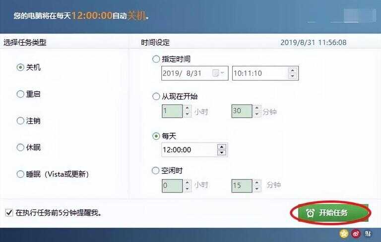 5.根据自己的需求选择对应的【任务类型】设置对应的【时间设定】后点击【开始任务】即可完成。