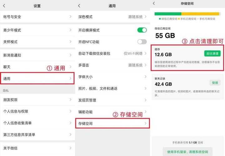 微信可以说是手机中内存占用比较多的应用,因为它会自动缓存图片、视频、聊天记录等数据,大家需要对其进行深度清理,才能够释放出更多的储存空间,这个操作可以在微信设置中完成清理。