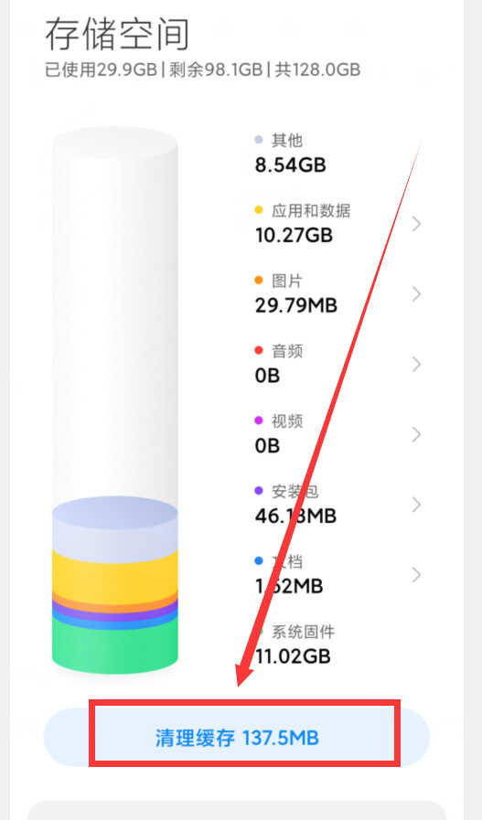 这里,我们可以看到,手机的缓存有137M大小,如果你不经常清理,可能有几G,甚至几十G大小。点击“清理缓存”按钮,就可以快速释放这部分内存空间。