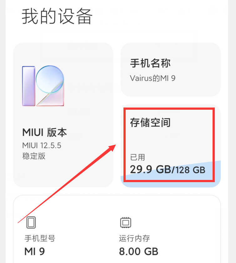 点击“我的设备”,就会进入手机的详情页面(如下图)。