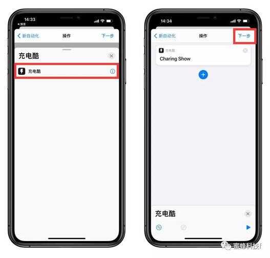 跳转到新自动化界面,选择【充电酷】,点击右上角【下一步】