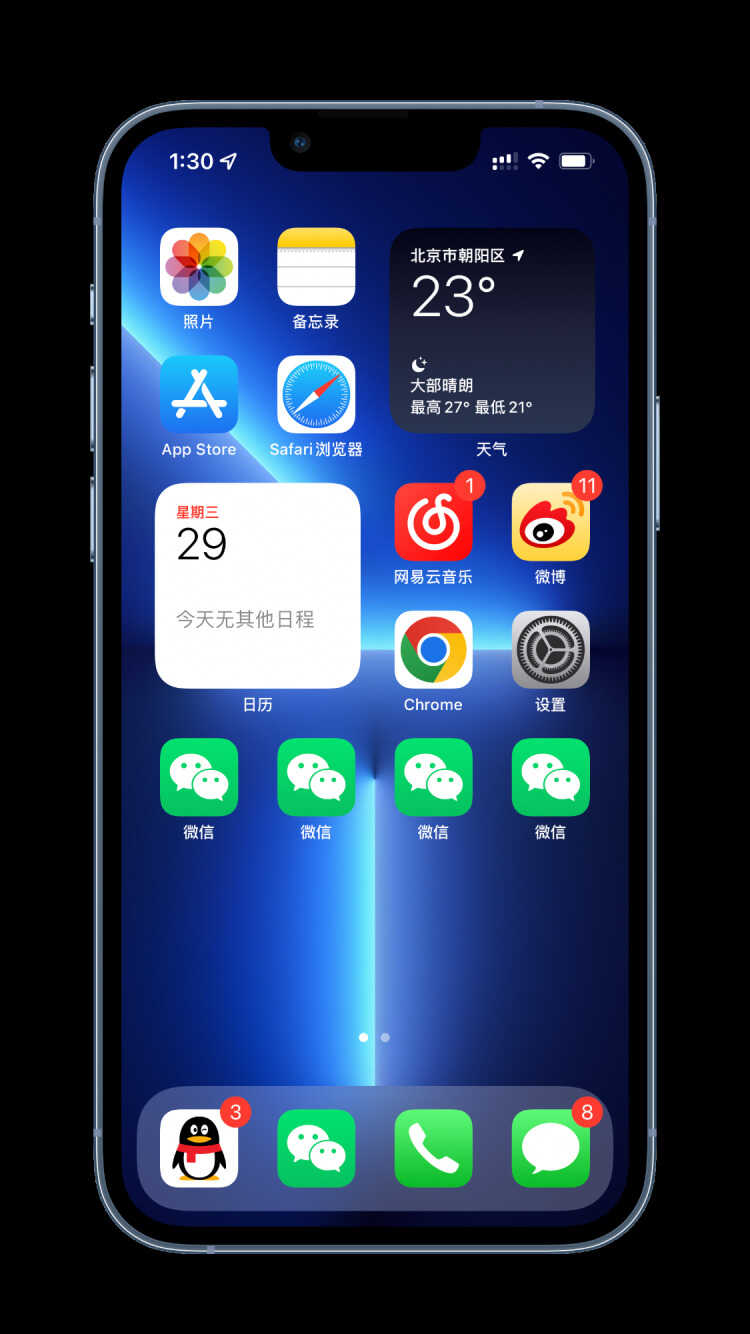 在iOS的资源库中,我们可以在同一个页面中放置两个相同的应用图标,也就是说,我们可以DIY出不同的专属应用页面。