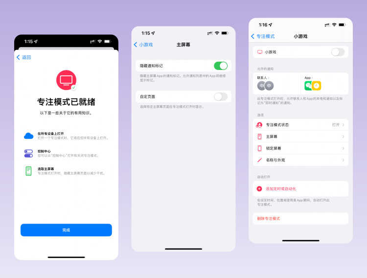 事实上我对于这一功能的了解并不多,在我印象里其就是一个早就在Android上出现的「情景模式」功能,两者非常相似,或者说两者初衷相同,都是想让人能够放下手机,以更专注的方式去进行工作、学习,也正是因为如此我也没有对其太多关注。