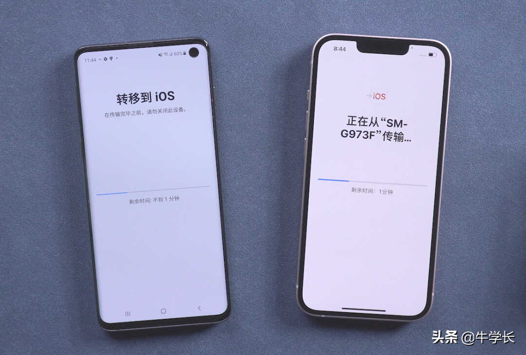 步骤5:数据转移成功。等待iPhone端和安卓手机端数据传输进度条走完,直到显示“传输完成”即可。