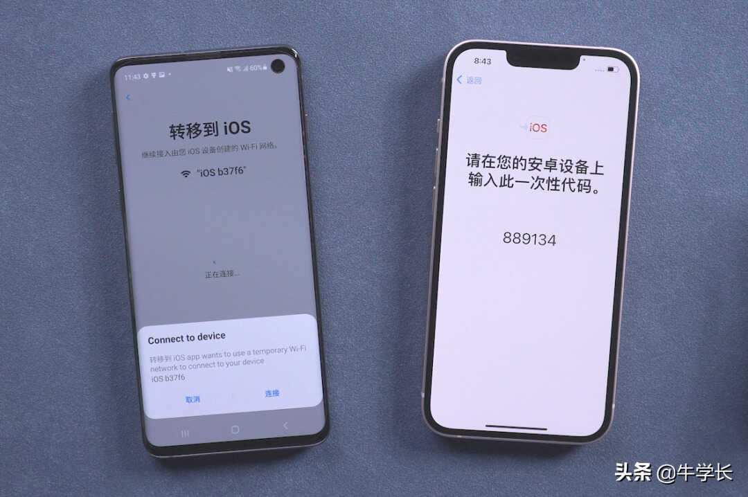 步骤3:将新iPhone端的6位代码输入到安卓手机端,再点击继续。