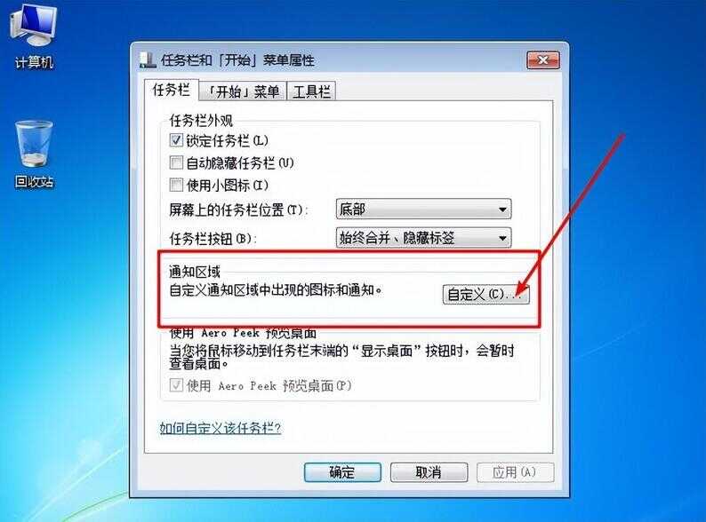 2、 在菜单属性界面中,找到并点击中间的“自定义”选项