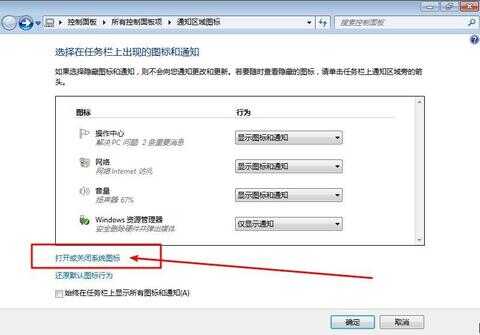 3、 在接下来的界面中,找到并点击“打开或关闭系统图标”