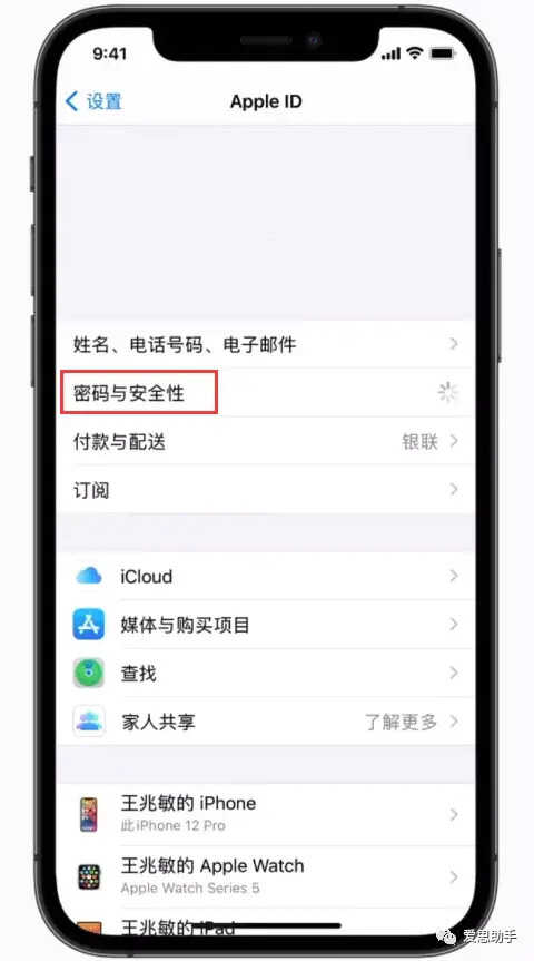 轻点“密码与安全性”。