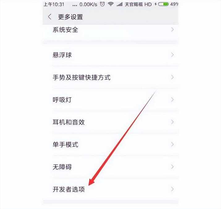 5、 可以看见下方有一个开发者选项命令菜单,我们通过这里进行设置