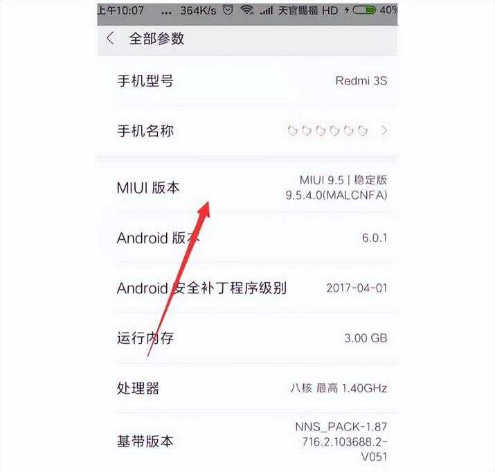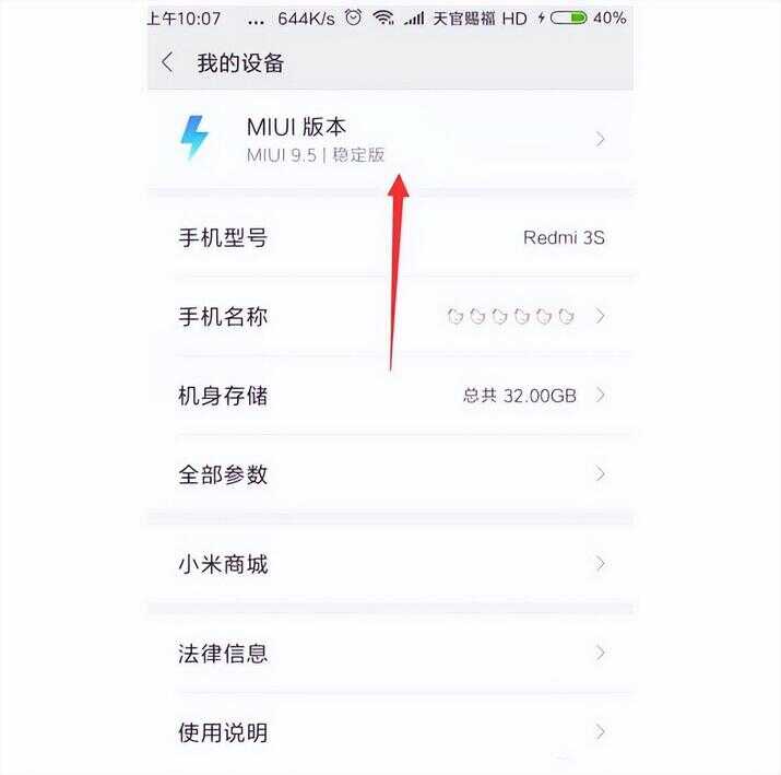 3、 多次连续点击MIUI版本这个位置,点击6次后下方就出现今天开发者选项的提醒