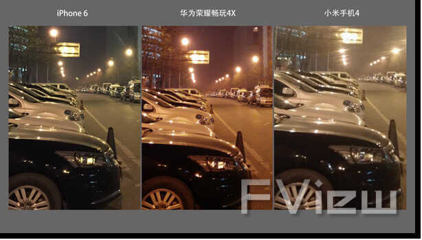 夜景方面,畅玩4X的白平衡漂移再次出现,而在画面的清晰度上,三者相同的焦点处产生了明显的差异,iPhone6和畅玩4X都比较锐利,但在画面的纯净度上依旧是iPhone6领先。