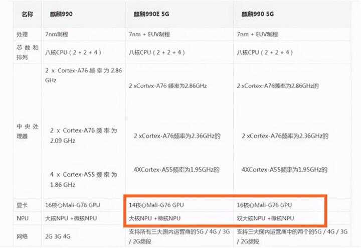 简单来说,990e 5G处理器是麒麟990 5G处理器的简配版,但是保留了大部分功能,还升级了一项麒麟990 5G处理器所没有的支持更多网络频率的功能,在这上面看来还是各有优缺点的,最后两个版本手机电池都是4500mAh,都是40W有线快充。