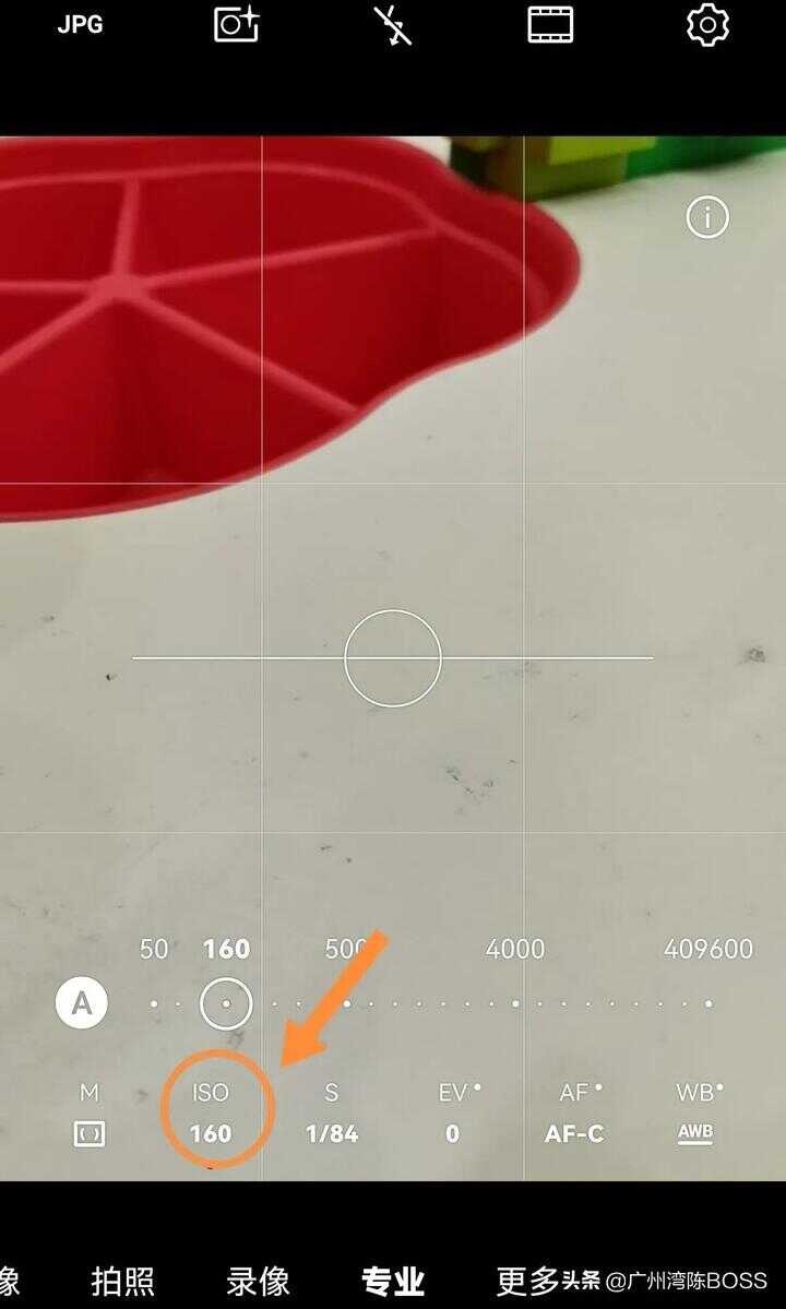 点击“ISO”,左右移动数值大小,调整到上面需要的数值就可以了。